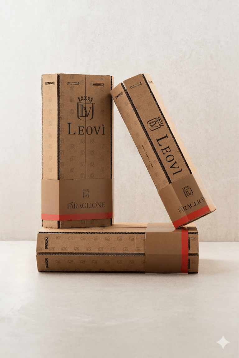 Ogni bottiglia Leovì è confezionata con materiali eco-friendly, riciclabili e certificati, dalla carta e cartone FSC agli inchiostri ad acqua, per un packaging sostenibile che accompagna il vino fino a casa dei nostri clienti.